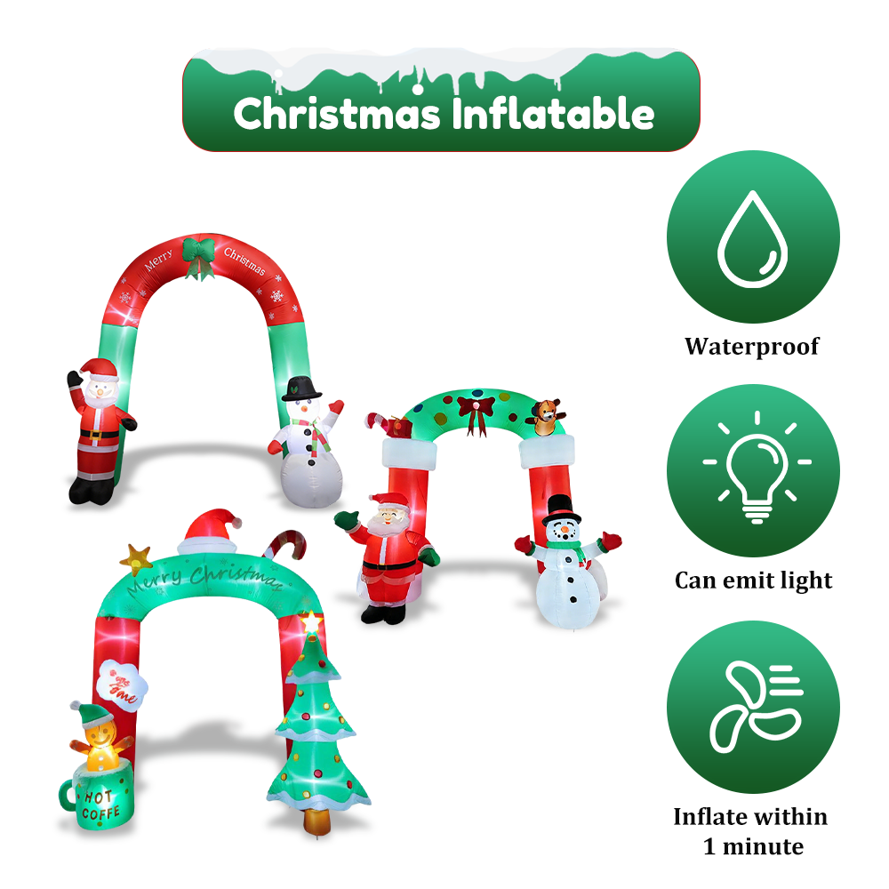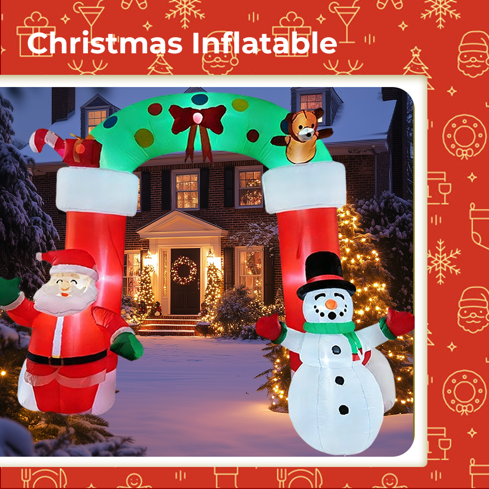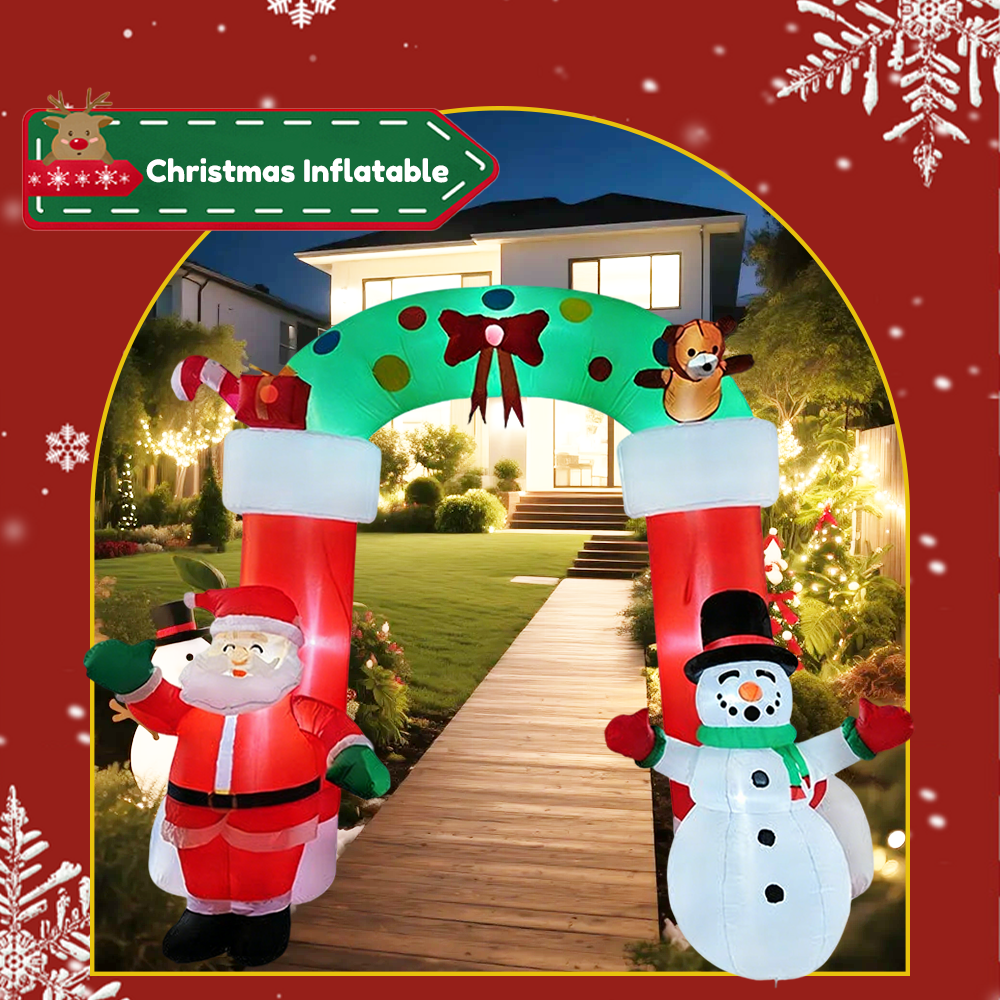 1. The inflatable arch outdoor holiday yard decorations are a must-have for any Christmas .Equipped with bright LED lights, this enchanting display not only illuminates your yard at night but also captures the hearts of all who pass by.