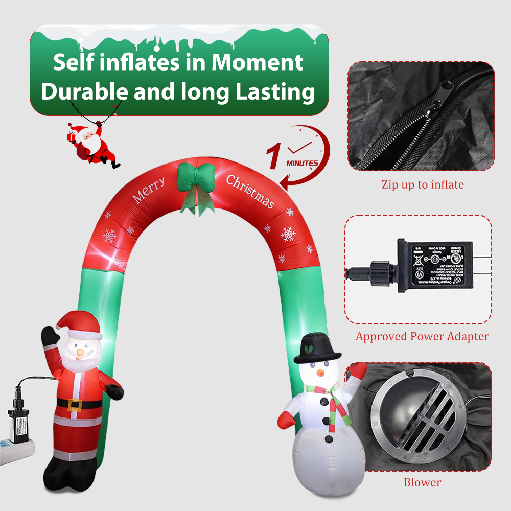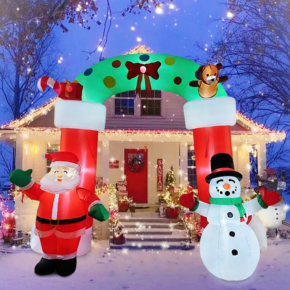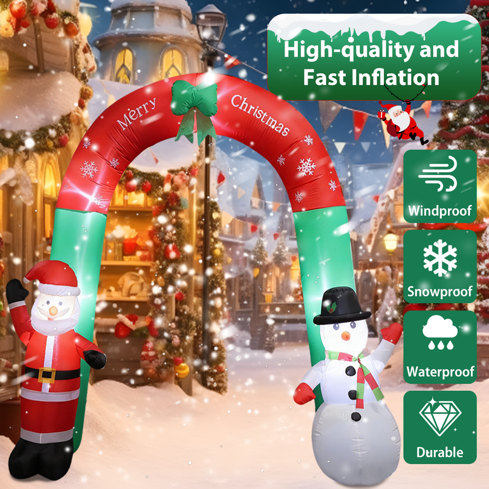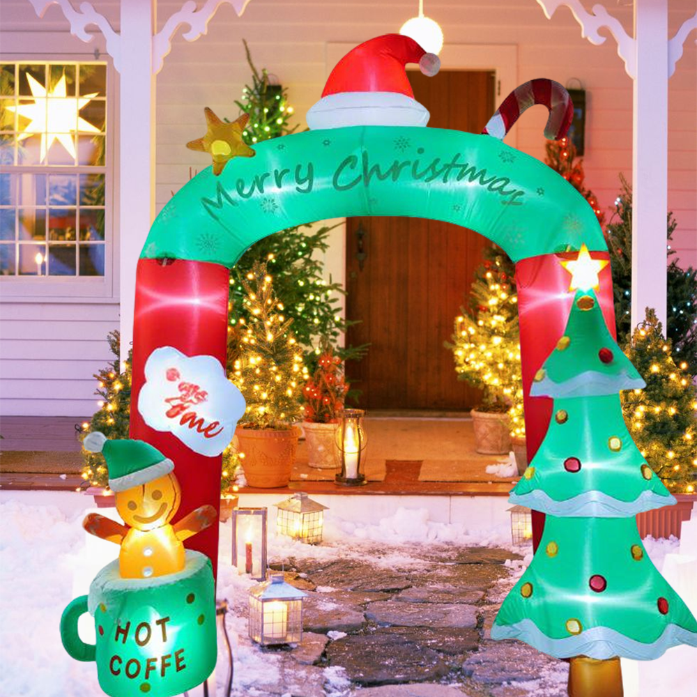 1. The inflatable arch outdoor holiday yard decorations are a must-have for any Christmas .Equipped with bright LED lights, this enchanting display not only illuminates your yard at night but also captures the hearts of all who pass by.