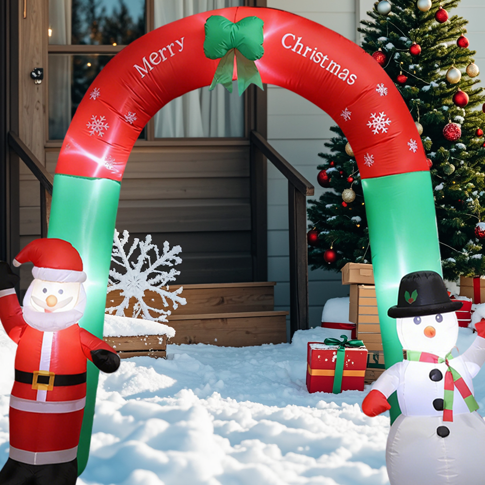Christmas Inflatable Arch with LED Lights Santa Snowman Blow Up Decor for Outdoor Yard, Garden, Lawn Holiday Decorations