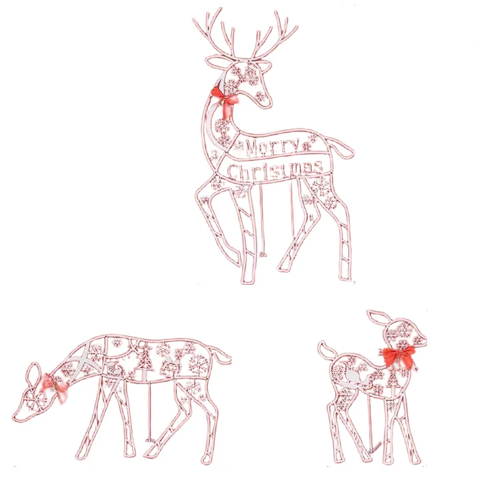 LED Lighted Reindeer Family Set Of 3 Metal Outdoors Indoor Christmas Deer Lawn Yard Porch Decor White Aluminum Alloy Weather